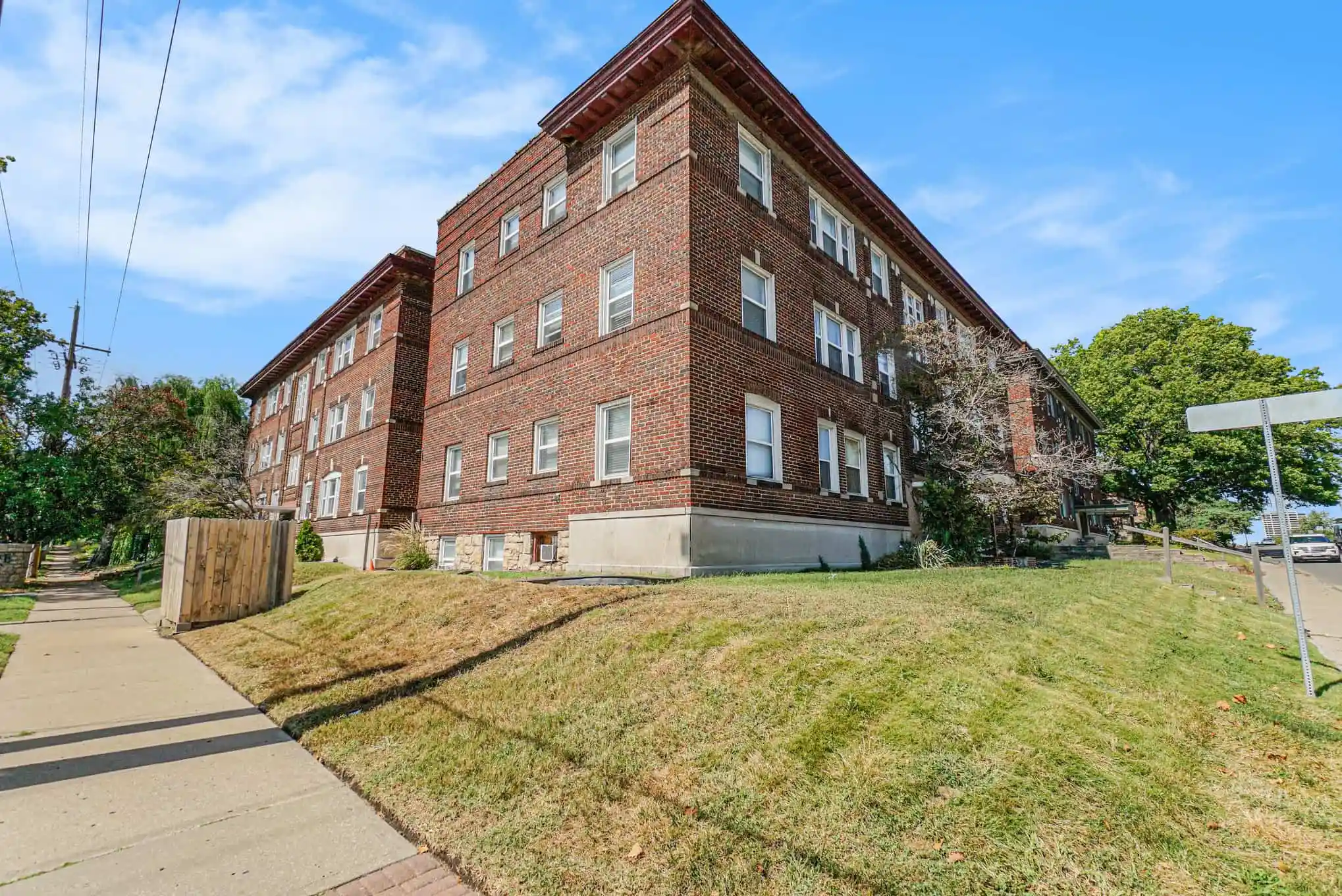 Right in the heart of Kansas City’s walkable Valentine neighborhood are two adjacent buildings with a parking lot and historic Kansas City charm. The buildings were originally constructed in 1923 and have been well-maintained since, with new electrical, plumbing, windows, and central heat and air. Units have been restored to preserve original charm while including features that the modern renter looks for including central heat and air and a dishwasher.