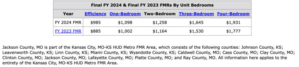 2024 Kansas City MSA Fair Market Rent (FMR) by bedrooms